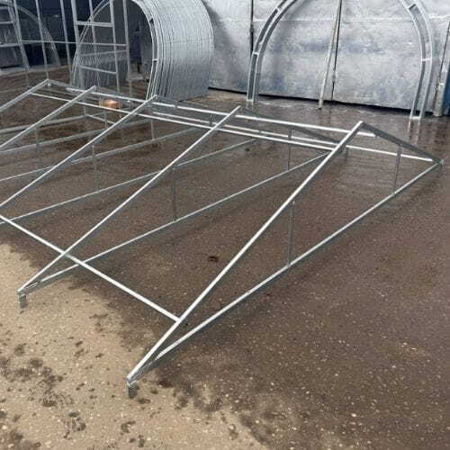 Каркас из профильной трубы 25×20 или 40×20 мм с толщиной стенки 0,8 мм и дополнительным ребром жёсткости. Металл — двойная горячая оцинковка (гальваника): такой не ржавеет. Производство — российский завод «СеверСталь». Надёжно и на года.