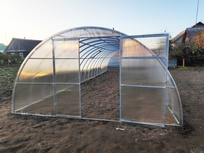Теплицей мы очень довольны, долго выбирали, взяли Титан с цельной дугой, немного по дороже, но разница огромная.